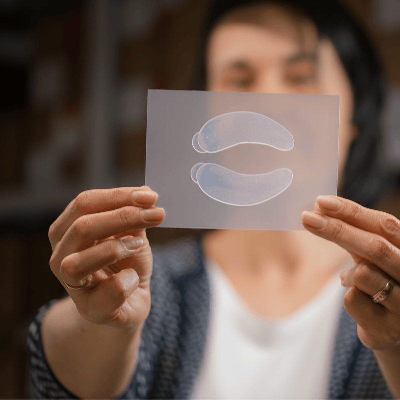 Hemos creado formas individuales para (casi) todas las partes de la cara y el cuerpo. En él se vierten manualmente dos capas de silicona médica: la almohadilla se compone de un soporte y una capa adhesiva en la que se incorpora ácido hialurónico 100 %. ¿Cortar bordes? En absoluto. En nuestro caso ambas capas se fusionan y garantizan así una adherencia óptima y una larga vida útil de las pastillas. ¡Tenemos la patente internacional para esta funcionalidad!